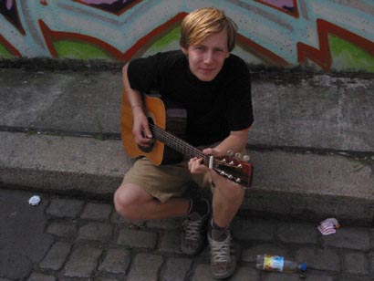 Los gings mittags vor der Schule mit Chrissi und seiner Klampfe