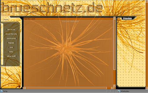 | Also der Header hat mir eigentlich ganz gut gefallen, ich hatte sogar rechts an eine mögliche shoutbox gedacht :). Wie man vielleicht im mittleren Teil erkennen kann, habe ich mal ein wenig mit halbtransparenten Tabellen experimentiert (man beachte den wirklich unpassenden Hintergrund), das Problem war nur, dass bei größeren Tabellen die Seite durch die Transparenz arg langsam wurde. |