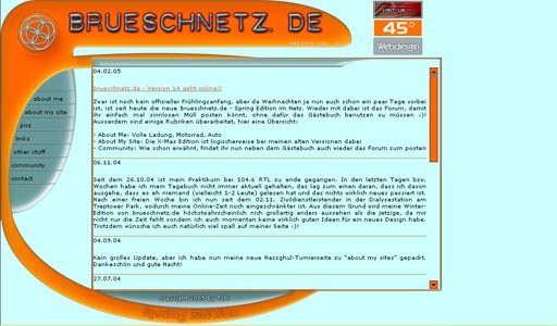 | Die Springedition 2005 stand vom Februar bis Dezember 2005 im Netz Wieder mehr helle Farben und auch mal wieder orange, ausserdem ein verspielteres Design als vorher mit einem tollen runden "Logo" oben links was ich auch bei der 15.Version in anderer Form eingearbeitet habe. |