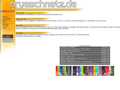 | Ganze 31 Monate stand Version 16 im Netz. Das lag allerdings daran, dass ich zwischen Ende 2005 und Ende 2007 in Halle gewohnt und mich in dieser Zeit gar nicht mehr mit Webdesign beschäfftigt hatte. Eine schlichte Seite, Weiß und Gold-Gelb (oder so) bildeten den Farbton. Mit dabei war meine Musik-Playliste. |