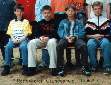 | Dann ging es mit 4 Jahren ab in den Kindergarten und ich lernte die ersten Leute kennen, die ich heute noch kenne und zwar Linn & Janin. Ich überlegte mir, dass ich reifer aussehen musste und ließ mir einen, zu der Zeit echt angesagten, langen Haaransatz am Hinterkopf wachsen, nur irgendwie nervte er immer dann, wenn ich mir Kaugummiketten um den Hals machte und das alles in den Haaren kleben blieb! Die Zeit des Dreirads und des Rollers war vorbei, die neue Generation der Forbewegung hieß Fahrrad! Auch da hab ich tolle Erinnerungen, denn was ich damals nicht wusste, war dass man NIEMALS (!) die Vorderbremse ziehen sollte, wenn man einen Berg runter fährt und ausserdem hätte ich nie gedacht, dass es so weh tun könnte, wenn man freihändig über einen Bordstein fährt :)... Na ja, ich war ein ziemlich geschädigtes Kind und damit es nicht langweilig wurde steuerte mich meine Schwester auch gerne mal mit dem Schlitten auf einen steilen Berg gegen ein Stromhaus und sprang kurz vor dem Aufprall selber ab (meiner Meinung nach ein versuchter | ![]() |
